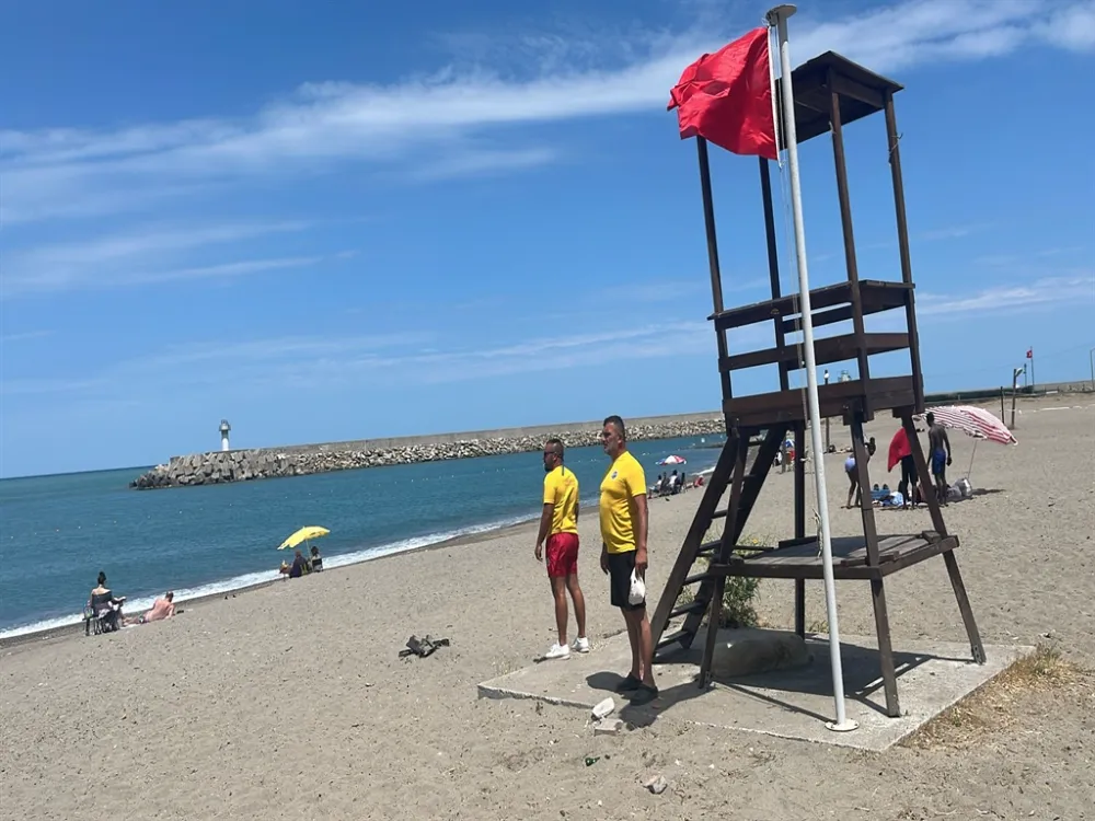 ZONGULDAK'ın Çaycuma ilçesi Filyos plajına olumsuz hava şartları nedeniyle kırmızı bayrak çekildi. Filyos'ta denize girmek yasaklandı.