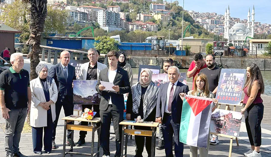 AK Parti Zonguldak İl Gençlik Kolları Başkanı Feyyaz Öz okuduğu basın açıklamasında, yeni eğitim-öğretim yılının başladığını ve milyonlarca öğrencinin sıralarını doldurduğunu belirterek, Gazze’de ise çok farklı bir manzara yaşandığını ifade etti. Gazze’de binlerce çocuğun artık hayatta olmadığını, sıraların boş kaldığını vurgulayan Öz, “Katil İsrail, 7 Ekim’den bu yana 19 bin çocuğu katletti. Çocukların defterleri hiç açılmadı, kalemleri hiç yazmadı. Hayatları bombalarla ellerinden alındı. Gazze’de yüzlerce okul yerle bir edildi, kütüphaneler yok edildi. Çocukların dünyasıyla birlikte yarının öğretmenleri, mühendisleri, doktorları da yok edildi” dedi.