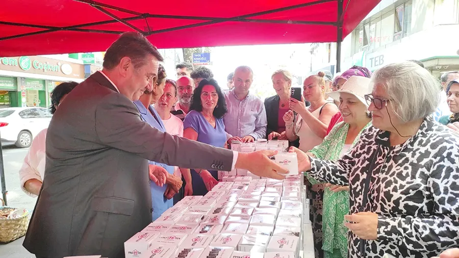 Vergi Dairesi önünde kurulan stantta vatandaşlara 1000 kutu kandil simidi dağıtıldı. Belediye Başkanı Tahsin Erdem, stant alanında hemşehrileriyle bir araya gelerek Mevlid Kandili’ni kutladı ve simitleri kendi elleriyle takdim etti.