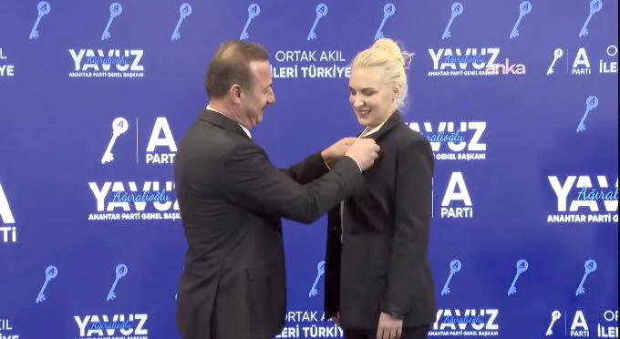 CHP Genel Merkez Kadın Kolları Genel Başkan Yardımcısı ve Zonguldak İl Kadın Kolları Başkanlığı görevlerinde bulunan Merve Kır Müftüoğlu’na rozetini, Anahtar Parti Genel Başkanı Yavuz Ağıralioğlu taktı.