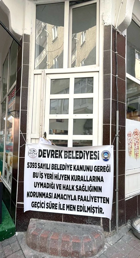 Devrek Belediyesi’nden yapılan açıklama; “Zabıta Müdürlüğümüz tarafından ilçemiz genelinde yürütülen denetimler kapsamında, hijyen kurallarına uygun olmayan ve ruhsatsız faaliyet gösterdiği tespit edilen bir iş yeri daha gerekli işlemler yapılarak mühürlenip faaliyetlerine son verilmiştir” denildi.