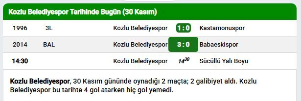 Yeşil-Beyazlılar, 30 Kasım’da 3. Lig’de oynadığı 1996’da kendi evinde karşılaştığı Kastamonuspor’u 1-0 BAL’da oynadığı 2014’de Babaeskispor’u 3-0 ve 30 Kasım 2025’te yine kendi evinde ağırladığı Sücüllü Yalı Boyuspor’u 2-0 yenerek, gol yemeden galibiyet geleneğini sürdürdü.