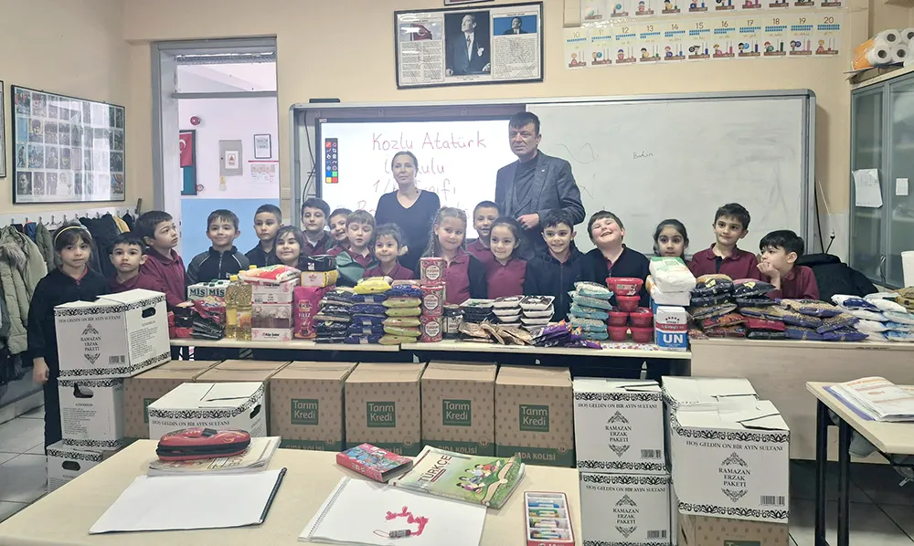 Kozlu Atatürk İlkokulu 1-A sınıfı öğrencileri, Ramazan ayı dolayısıyla başlattıkları gıda kampanyasıyla ihtiyaç sahiplerine umut oldu. Minik öğrenciler, hazırladıkları yardım kolileriyle paylaşmanın ve dayanışmanın en güzel örneklerinden birini sergileyerek büyük mutluluk yaşadı.