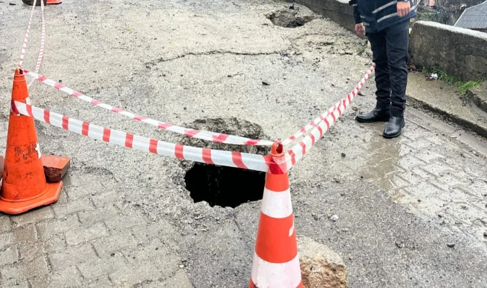 Oluşan göçüğün altında bir mağara bulunduğu öğrenilirken, çevredeki vatandaşların ihbarı üzerine olay yerine yetkililer sevk edildi. Güvenlik önlemleri kapsamında göçük alanı emniyet şeridiyle çevrilerek yol araç ve yaya trafiğine kapatıldı.
