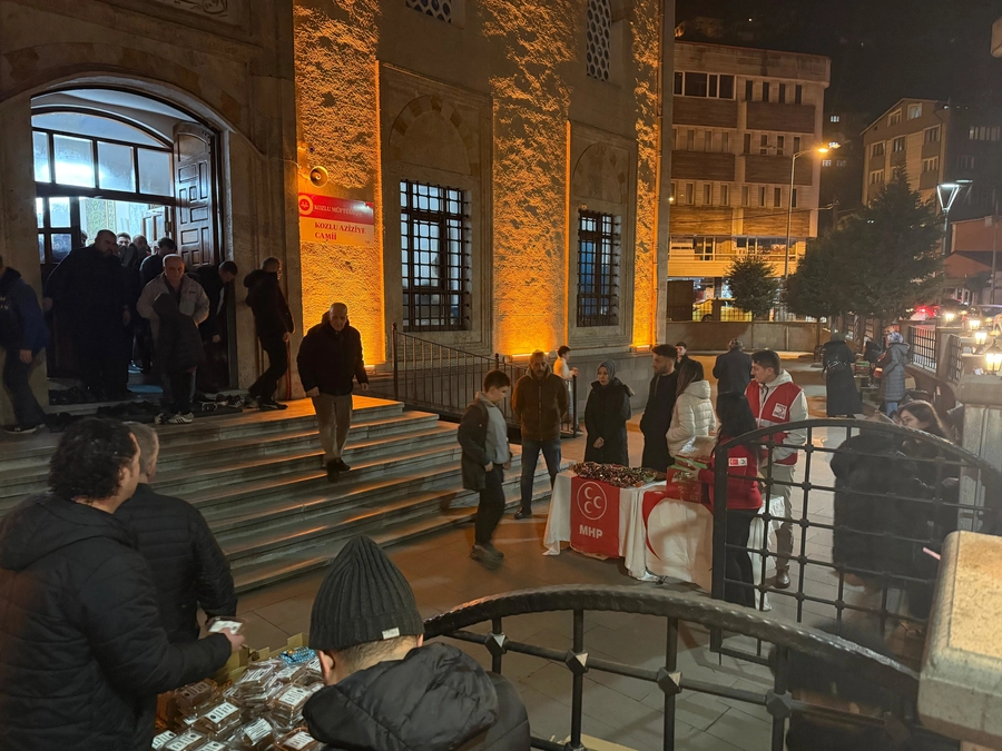 Milliyetçi Hareket Partisi Kozlu İlçe Başkanı Atakan Karali ve KAÇEP yönetimi, Aziziye Camii önünde cami cemaatine çeşitli ikramlarda bulunarak mübarek geceyi vatandaşlarla birlikte idrak etti.