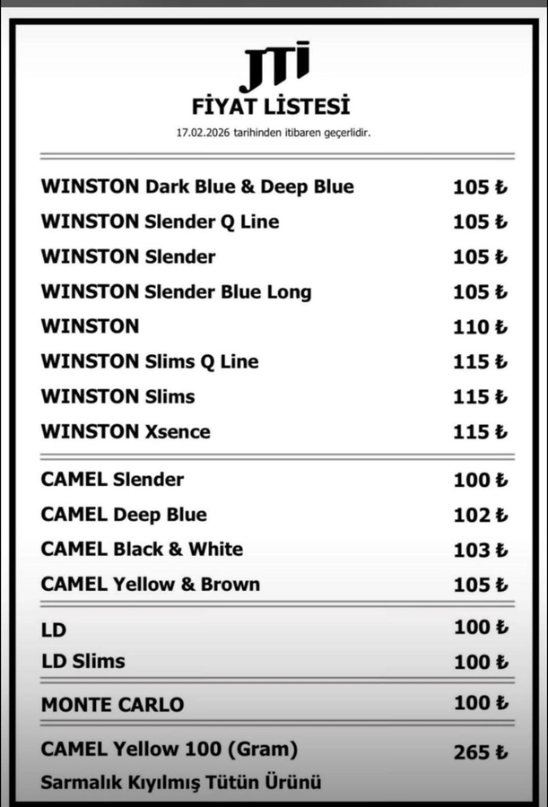 Tiryakilere üzücü haber. JTİ Sigara Grubu yarından itibaren geçerli olmak üzere sigaralara 10 TL zam yaptı. Zamla birlikte 95 TL olan sigara paketi 105 TL’ye yükseldi.