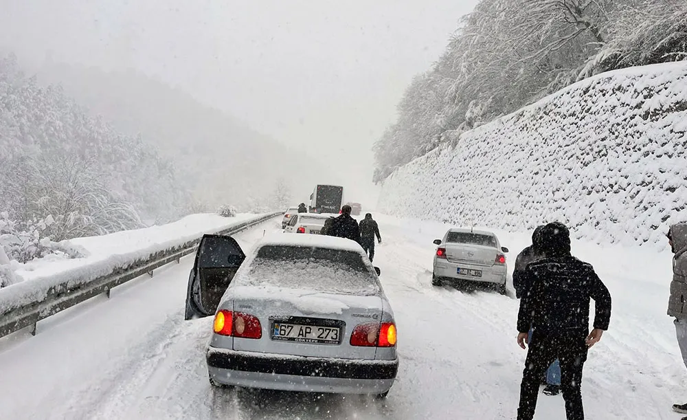 Zonguldak’ı etkisi altına alan yoğun kar yağışı ve soğuk hava, şehirlerarası yollarda sürücülere zor anlar yaşatıyor. Zonguldak-Ankara kara yolu Sapça mevkisinde seyir halindeki uzun bir araç, kayganlaşan zeminde direksiyon hakimiyetini kaybederek makasladı. Aracın yolu enlemesine kapatmasıyla birlikte trafik akışı tamamen kesildi.