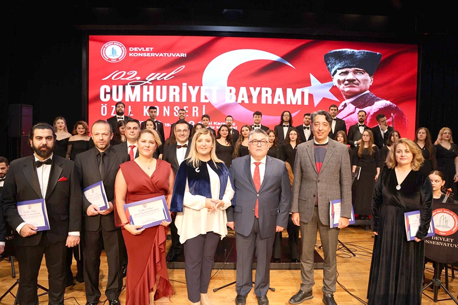 Cumhuriyet’in 102. yılı onuruna düzenlenen konser, çekilen hatıra fotoğrafının ardından alkışlar eşliğinde sona erdi.