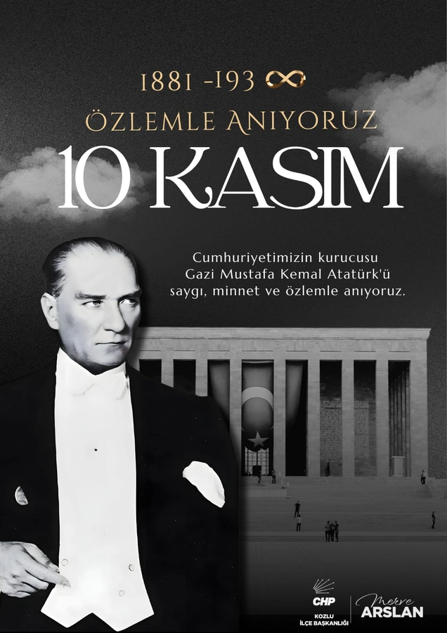 Cumhuriyet Halk Partisi (CHP) Kozlu İlçe Başkanı Merve Arslan, Gazi Mustafa Kemal Atatürk’ü ebediyete intikal edişinin yıldönümünde bir kez daha saygı, özlem ve minnetle andıklarını belirtti.