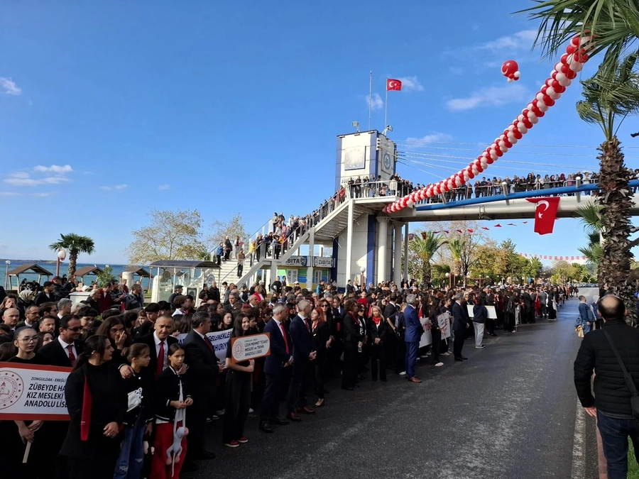 Kutlama Kdz. Ereğli Kaymakamı Fatih Yılmaz, Kdz. Ereğli Belediye Başkanı Halil Posbıyık, Zonguldak Milletvekilleri Saffet Bozkurt ve Eylem Ertuğrul, Karadeniz Bölge ve Garnizon Komutanı Tuğa. Yücel Korkut, Kdz. Ereğli Cumhuriyet Başsavcısı Mustafa Erbaş, Kdz. Ereğli İlçe Emniyet Müdürü Hasan Ünlü, Kdz. Ereğli İlçe Jandarma Komutanı Emrah Dinar, Kdz. Ereğli İlçe Millî Eğitim Müdürü Harun Akgül, kurum amirleri, öğretmenler, öğrenciler ve çok sayıda vatandaş katıldı.