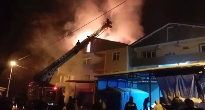 Zonguldak'ın Gökçebey ilçesinde çıkan yangında çatı tamamen kül oldu.