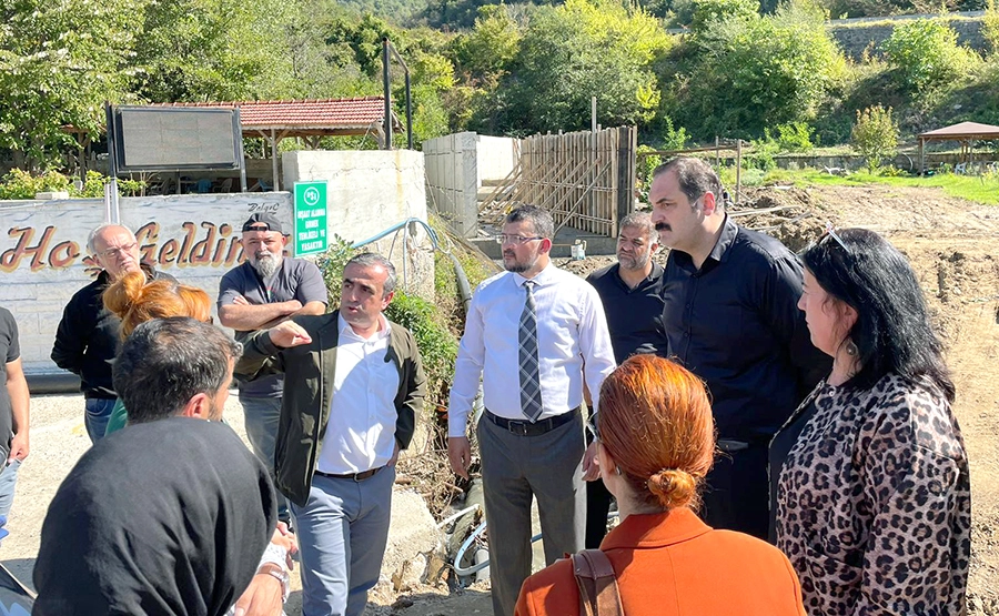 Kozlu Belediye Başkanı Altuğ Dökmeci, AK Parti Kozlu İlçe Başkanı Ali Duyar, CHP Kozlu İlçe Başkanı Merve Arslan, Esenköy Mahallesi Muhtarı Armağan Yılmaz ve DSİ 23. Bölge Müdürü Yasin Devrim, Esenköy Mahallesi sınırlarında yer alan Ilıksu Deresi’nde yürütülen çalışmaları yerinde inceledi.