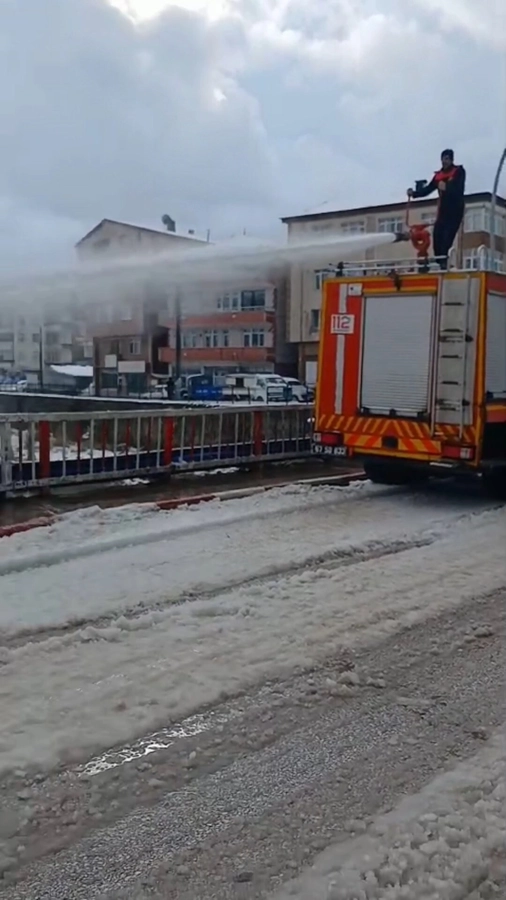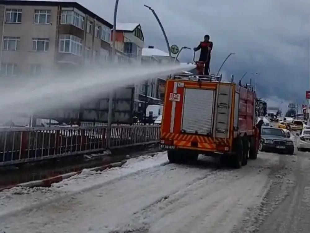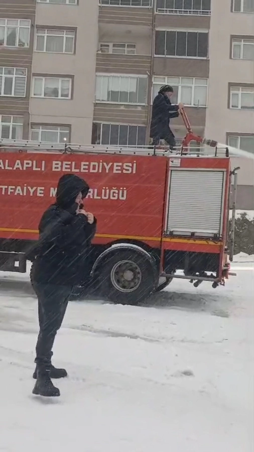 Alaplı Belediyesi ekipleri, buzlanmayla mücadele kapsamında tuz dökmek yerine denizden çekilen suyu itfaiye araçlarıyla cadde ve sokaklara püskürterek temizlik çalışması yaptı. Özellikle rampalı bölgelerde uygulanan yöntemle kar ve buzun kısa sürede eritildiği belirtildi.