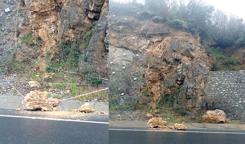 Kozlu’da heyelan… Kayalar yola devrildi…