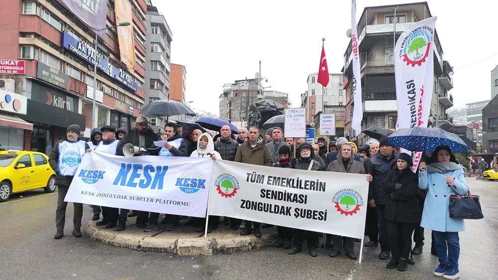 Zonguldak’ta Kamu Emekçileri Sendikaları Konfederasyonu (KESK) bileşenleri, Madenci Anıtı önünde bir araya gelerek “Geçinemiyoruz” eylemi gerçekleştirdi. Eyleme, Zonguldak Belediye Başkanı Tahsin Erdem, CHP İl Başkanı Devrim Dural, Merkez İlçe Başkanı Nazmi Özden, Kozlu İlçe Başkanı Merve Arslan, TMMOB bileşenleri ve KESK’e bağlı sendikaların temsilcileri de katıldı.