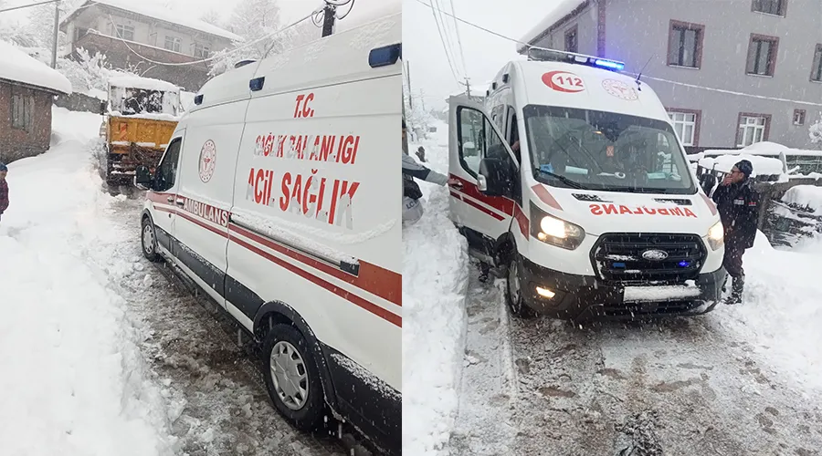Zonguldak’ın Kozlu ilçesine bağlı Çardaş Köyü’nde, yoğun kar yağışı nedeniyle kapalı yollara rağmen bir yaşlı kadın sağlık ekiplerine ulaştırıldı.
