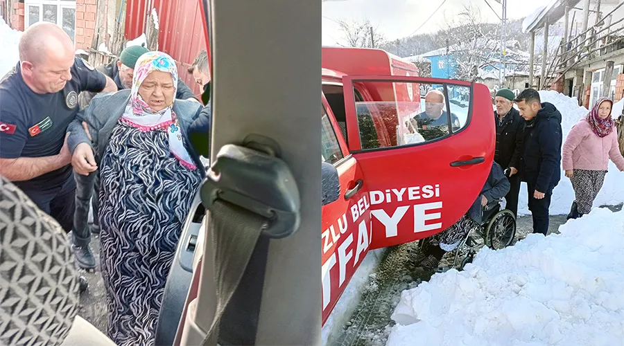 Yoğun kar yağışı nedeniyle Gücek Köyü’nde evinde mahsur kalan diyaliz hastası yaşlı bir kadın için ihbar alan itfaiye ekipleri, zorlu hava ve yol koşullarına rağmen kısa sürede bölgeye ulaştı. Karla kaplı yolları aşan ekipler, hastayı güvenli şekilde evinden alarak diyaliz merkezine ulaştırdı.