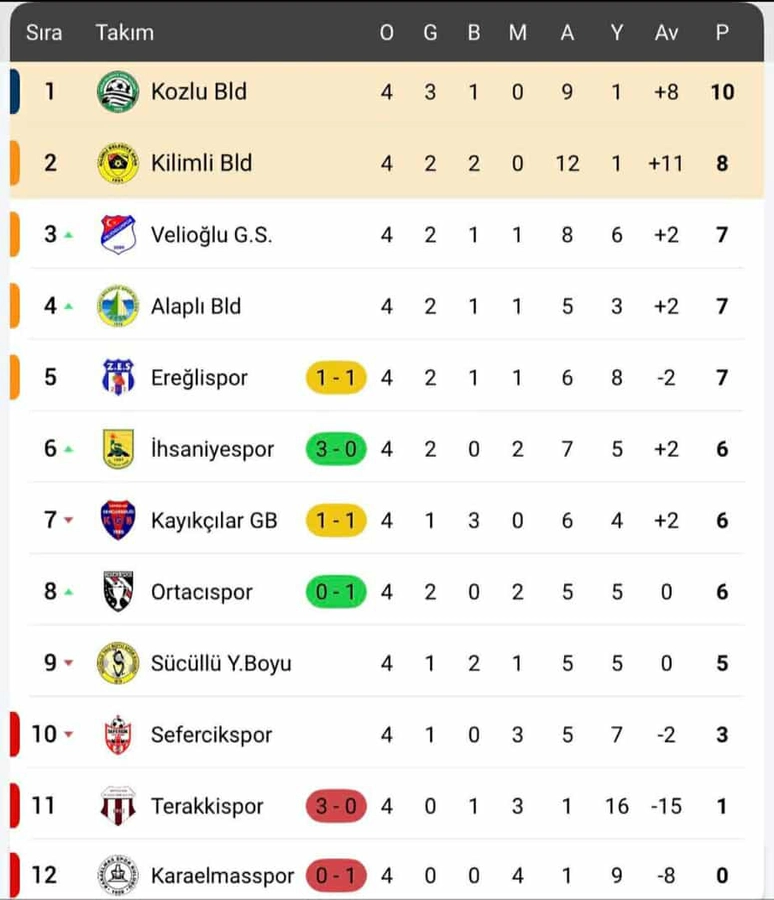 Temsilcimiz Kozlu Belediyespor ligde oynadığı 4 maçtan 3 galibiyet ve 1 beraberlikle topladığı 10 puanla zirvedeki yerini korudu.