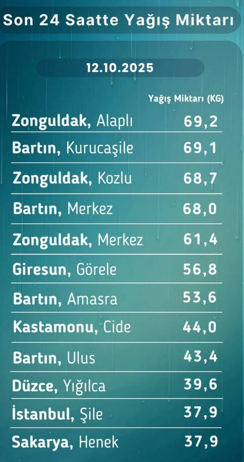 Meteoroloji yetkililerinin uyarılarının ardından sahada 7/24 görev yapan belediye ekipleri, yağışların etkilerini en aza indirmek için yoğun çaba sarf etti. Kozlu Belediyesi’nden yapılan açıklamada, yağış miktarının 12 Ekim 2025 itibariyle ölçüldüğü belirtilerek şu ifadelere yer verildi: