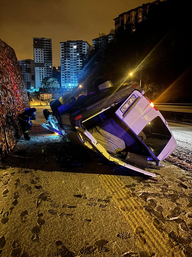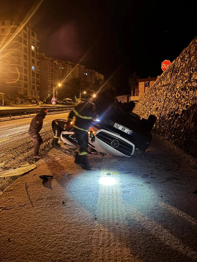 Kozlu İlçesine bağlı  Mahallesi karayolu Bilginler Adası önünde minibüs tali yoldan ana yola devrildi.