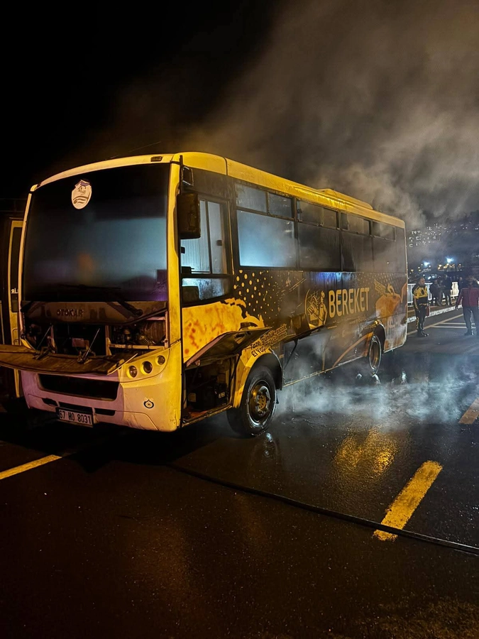 Zonguldak'ın Kozlu İlçesinde seyir halindeki özel halk otobüsünde henüz bilinmeyen bir sebepten dolayı yangın çıktı.