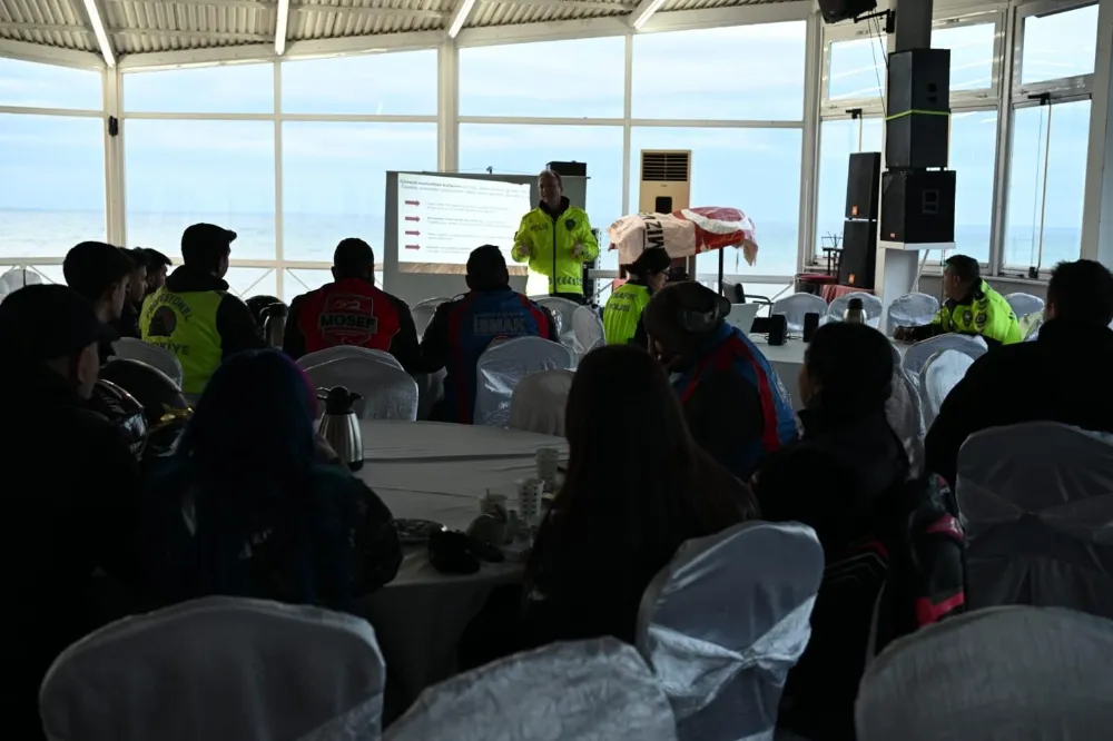 Zonguldak Emniyet Müdürlüğü Trafik Denetleme Şube Müdürlüğü, kentte görev yapan motokuryelere yönelik kapsamlı bir trafik güvenliği bilgilendirme toplantısı düzenledi.