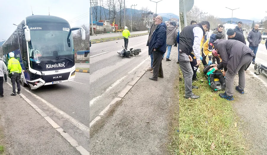 Kaza, Devrek Sanayi Sitesi mevkisinde yaşandı. Edinilen bilgiye göre; Bartın’dan Ankara yönüne seyir halinde olan N.Y. idaresindeki 34 PJJ 750 plakalı Kamil Koç firmasına ait yolcu otobüsü, aynı istikamette ilerleyen E.S. (36) yönetimindeki motosikletle çarpıştı.