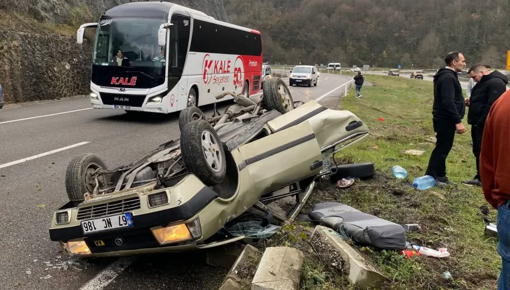 67 NC 186 plakalı binek otomobil, yolun kaygan olması nedeniyle sürücüsünün kontrolünden çıkarak takla attı. Kazada otomobil adeta parçalanırken, sürücü yaralandı.